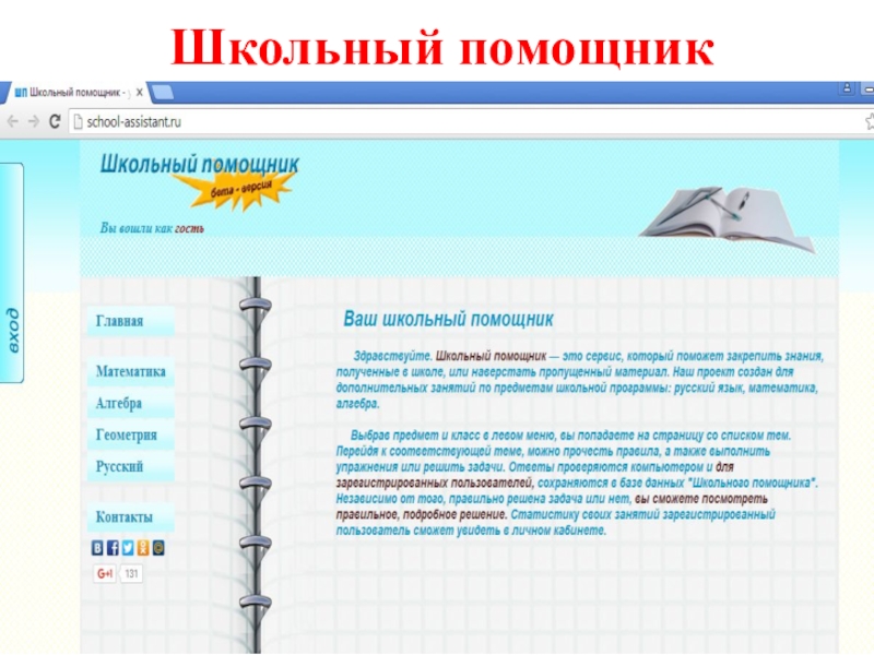 Это сайт презентаций, где можно хранить и обмениваться своими презентациями, докладами, проектами, шаблонами в формате PowerPoint с другими пользователями. Мы помогаем школьникам, студентам, учителям, преподавателям хранить и обмениваться учебными материалами.