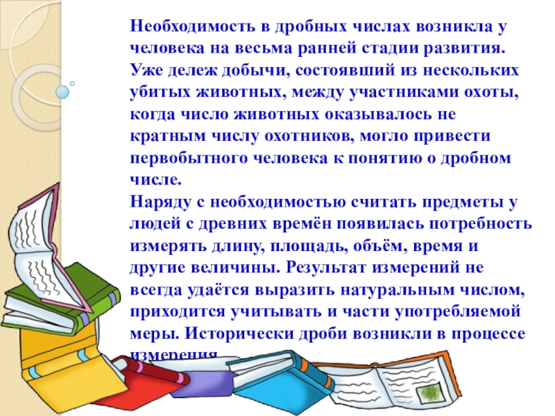 Слайд 3Необходимость в дробных числах возникла у человека на весьма ранней стадии
