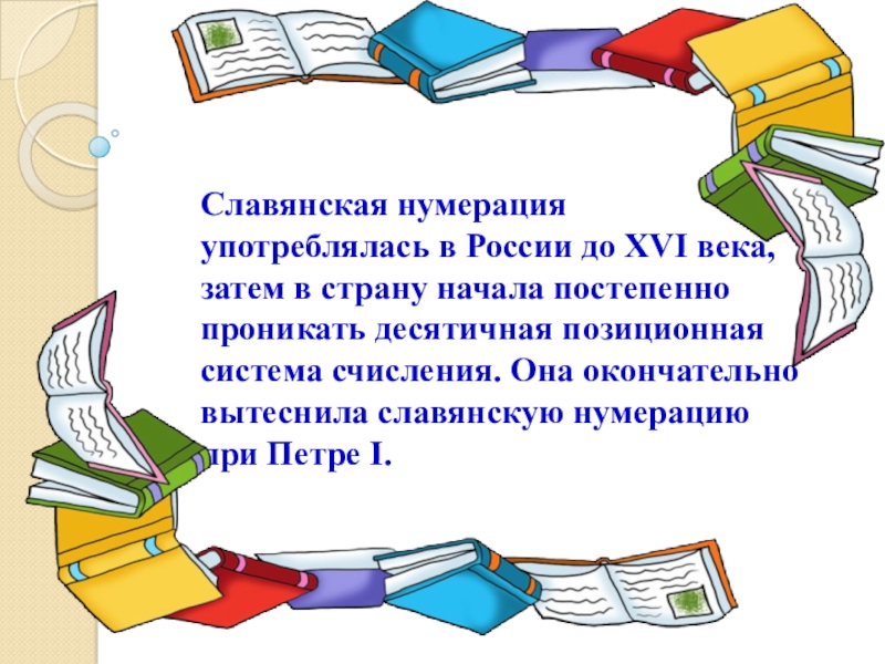 Слайд 20Славянская нумерация употреблялась в России до XVI века, затем в страну