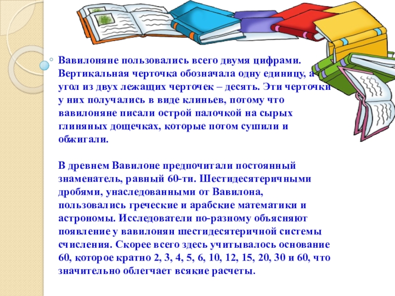 Слайд 14Вавилоняне пользовались всего двумя цифрами. Вертикальная черточка обозначала одну единицу, а
