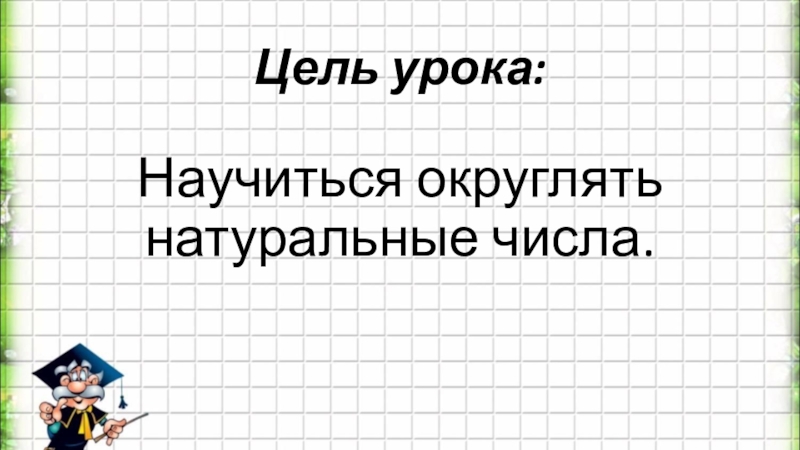 Цель урока:Научиться округлять натуральные числа.