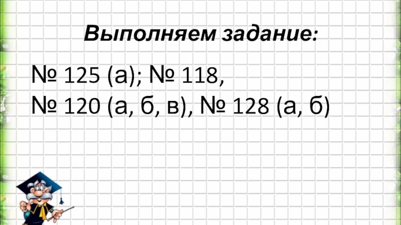 Выполняем задание:№ 125 (а); № 118, № 120 (а, б, в), № 128 (а, б)