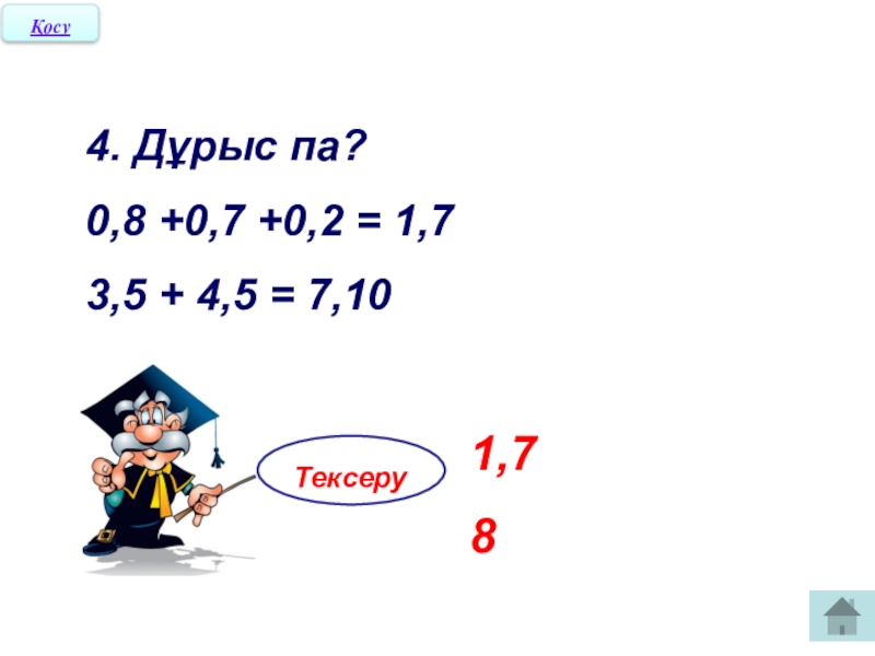 Ондық бөлшектерді қосу ережесін қайталадық, енді тапсырмаларды еш қиындықсыз шешеміз