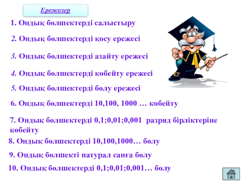 10. Ондық бөлшектерді 0,1;0,01;0,001… бөлу