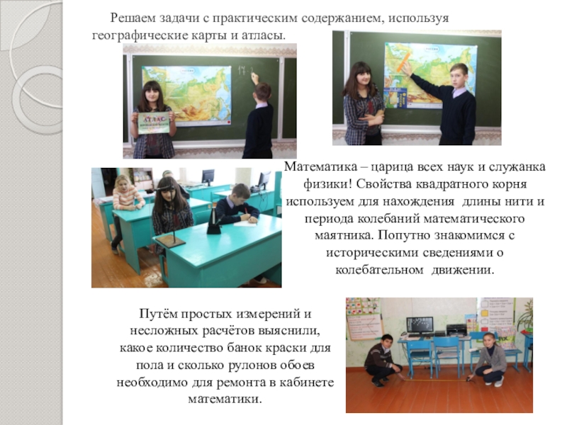 Путём простых измерений и несложных расчётов выяснили, какое количество банок краски для пола и сколько рулонов обоев необходимо для ремонта в кабинете математики.
