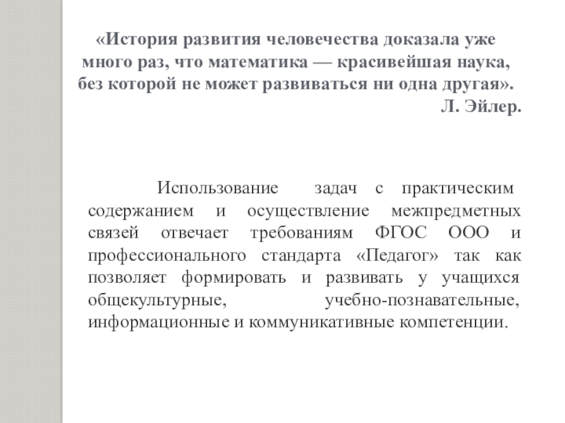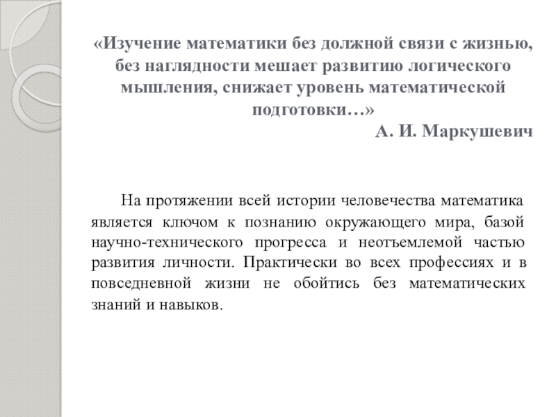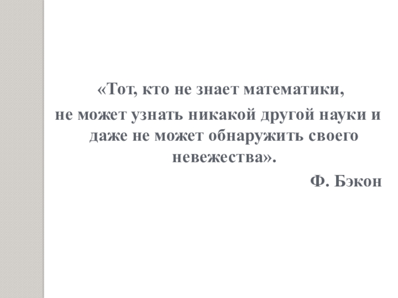 «История развития человечества доказала уже много раз, что математика — красивейшая наука, без которой не может развиваться ни одна другая».
