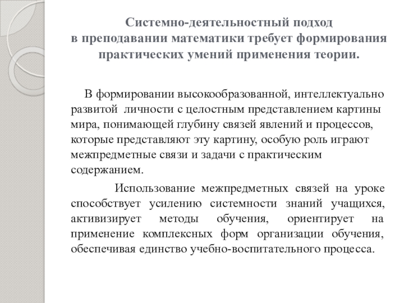 Использование математики как метапредмета, что позволяет более глубоко и детально изучать учебные дисциплины в школе.