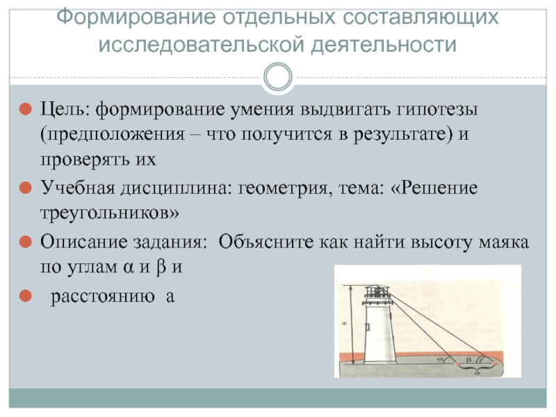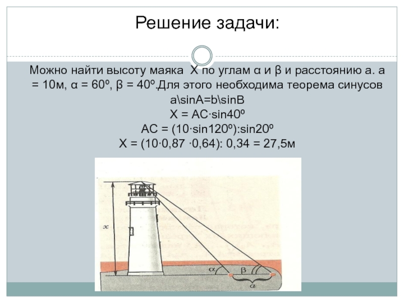 Описание задания: Объясните как найти высоту маяка по углам α и β и