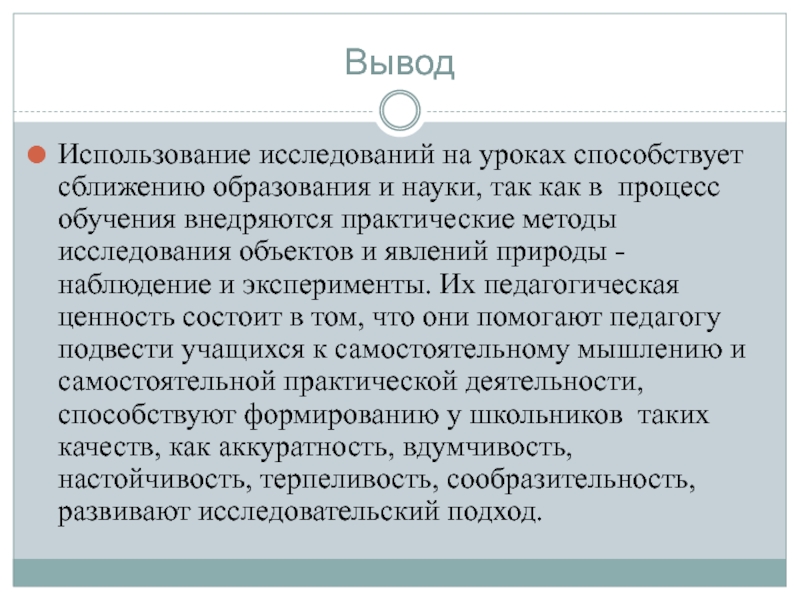 Использование исследований на уроках способствует сближению образования и науки, так как