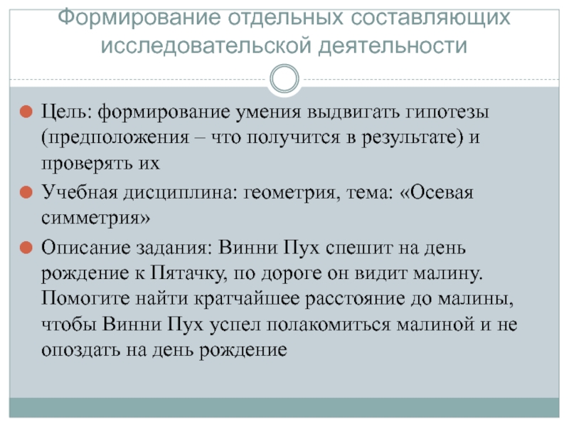 Слайд 17Формирование отдельных составляющих исследовательской деятельности