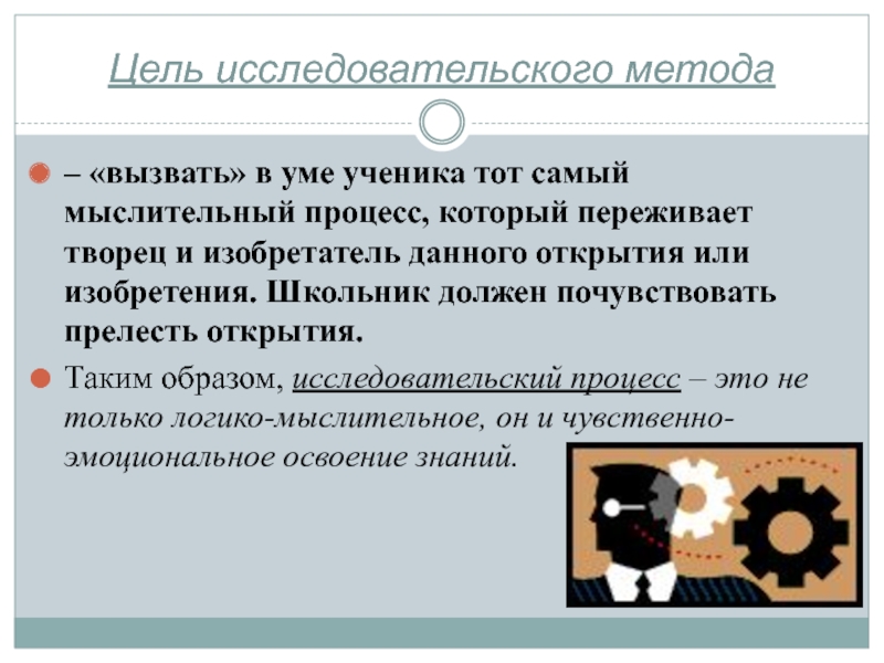 Таким образом, исследовательский процесс – это не только логико-мыслительное, он и чувственно-эмоциональное освоение знаний.