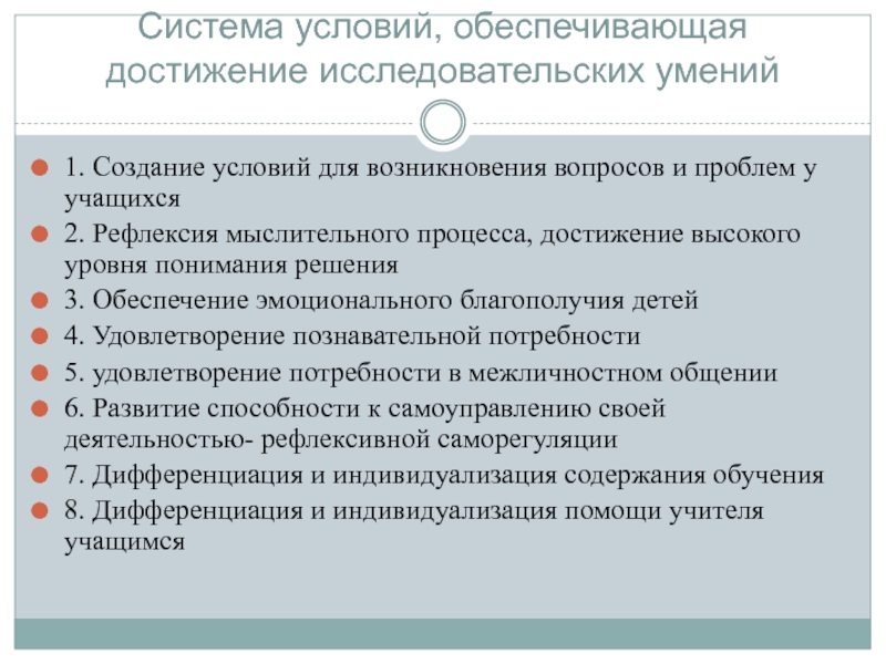 Слайд 16Система условий, обеспечивающая достижение исследовательских умений