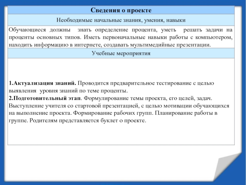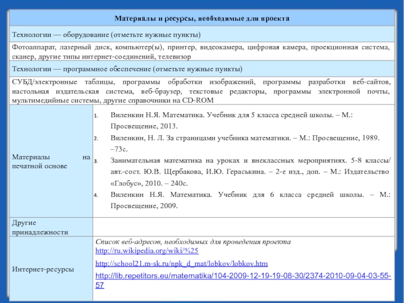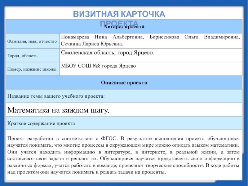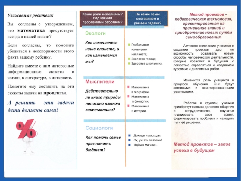 Презентация, доклад Организация проектной деятельности на уроках математики