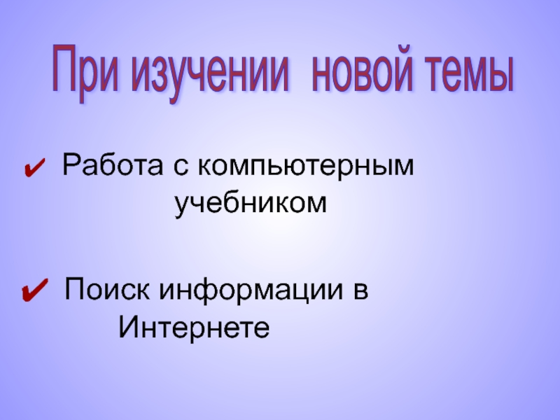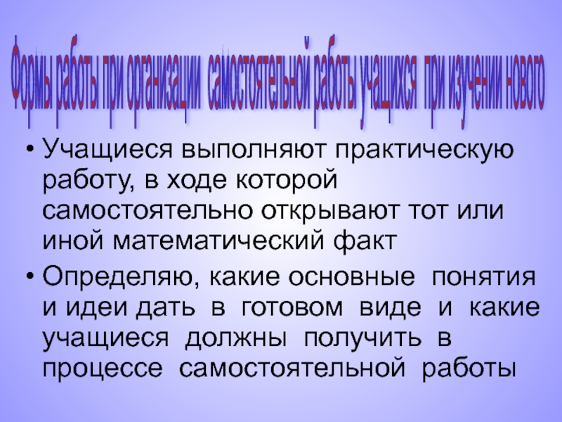 Формы работы при организации самостоятельной работы учащихся при изучении нового
