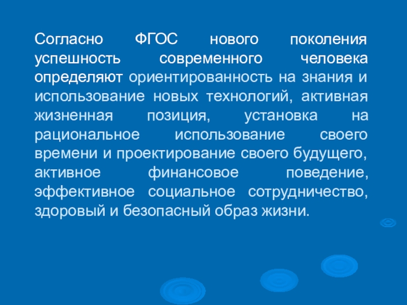 Слайд 2Согласно ФГОС нового поколения успешность современного человека определяют ориентированность на знания