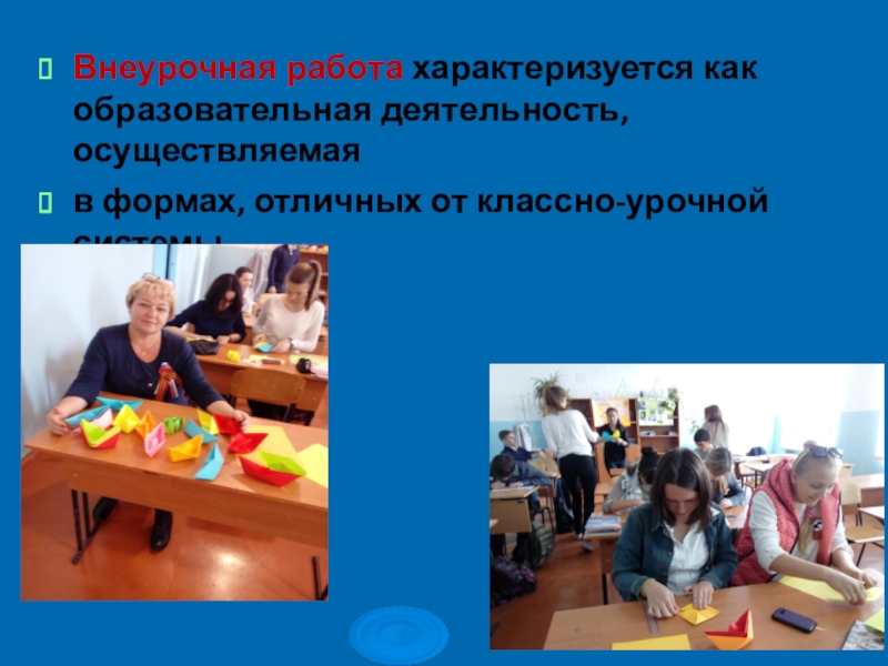 Слайд 15Внеурочная работа характеризуется как образовательная деятельность, осуществляемая