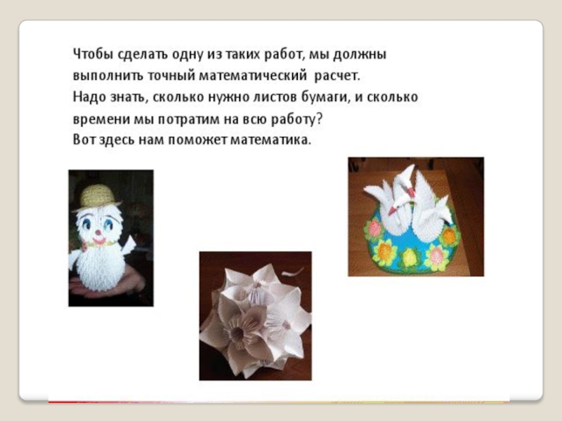 В 6 лет я ходила в кружок «Модульное оригами». Представляю свои работы, выполненные в кружке: «Снежинка», «Лебедь».