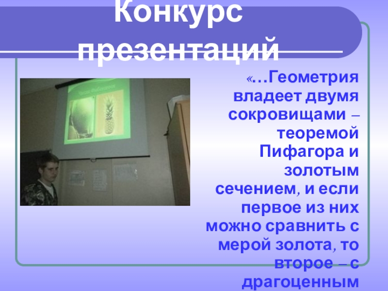 «…Геометрия владеет двумя сокровищами – теоремой Пифагора и золотым сечением,