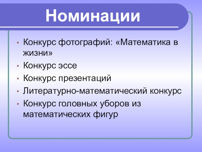 Слайд 2Номинации