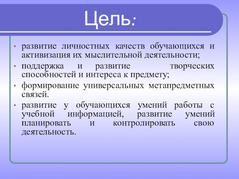 развитие личностных качеств обучающихся и активизация их мыслительной деятельности;