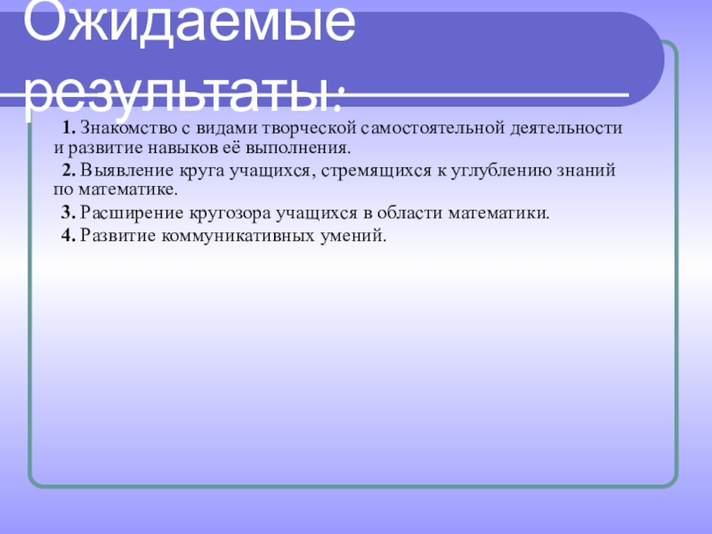 Слайд 5Ожидаемые результаты: