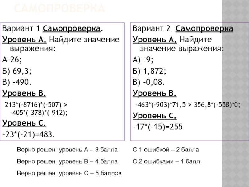 Верно решен уровень С – 5 баллов