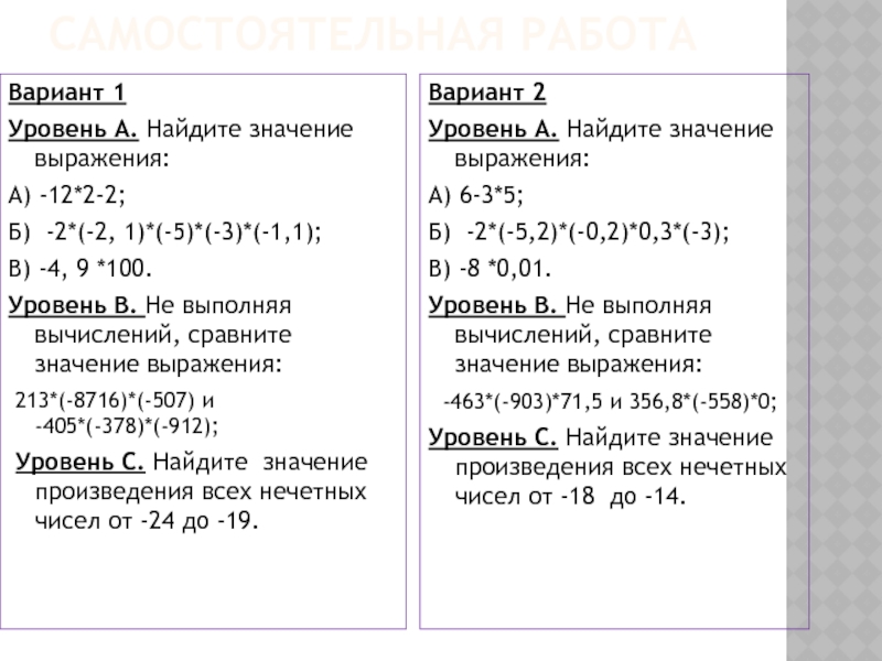 Уровень А. Найдите значение выражения: