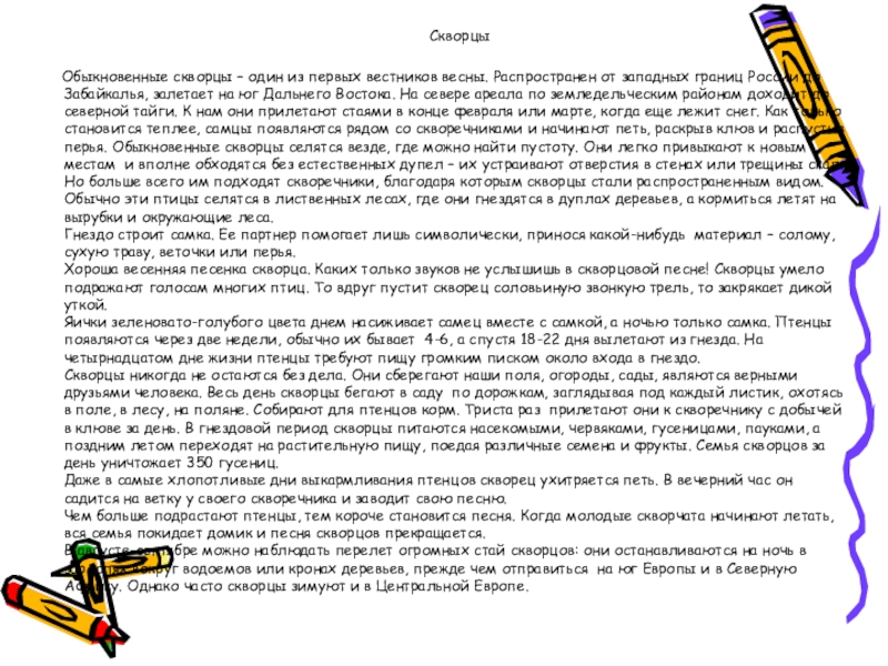 Слайд 2 Скворцы