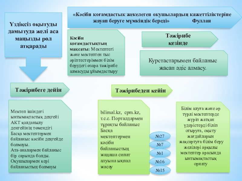 Басқа мектептермен кәсіби байланыстың жаңаша сипат алуына ықпал жасау