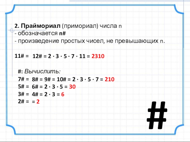 6# = 2 · 3 · 5 = 30