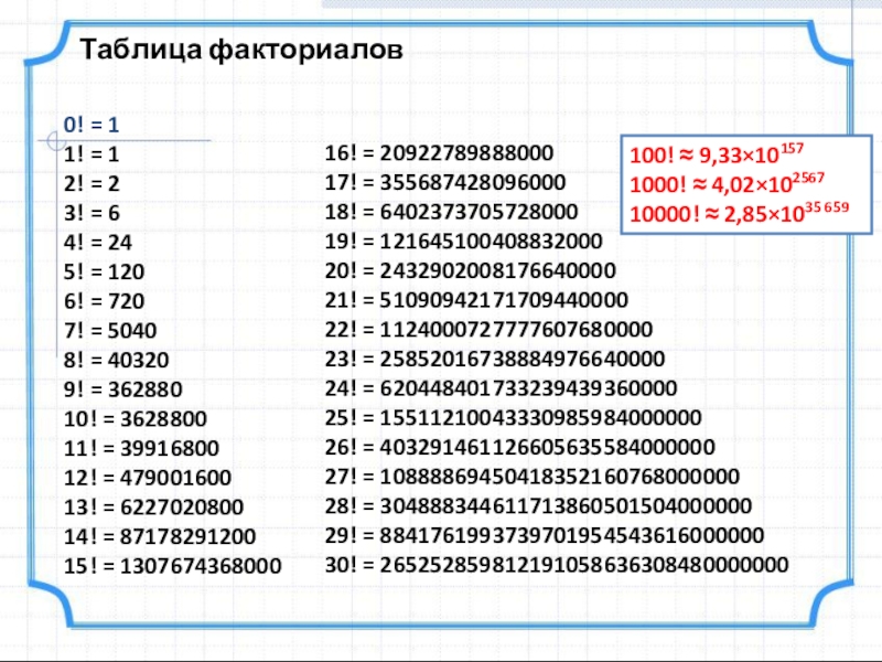 1808 г. - К. Крамп (1760 — 1826) придумал обозначение n!