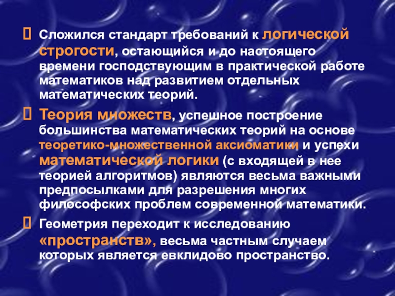 Слайд 12Сложился стандарт требований к логической строгости, остающийся и до настоящего времени