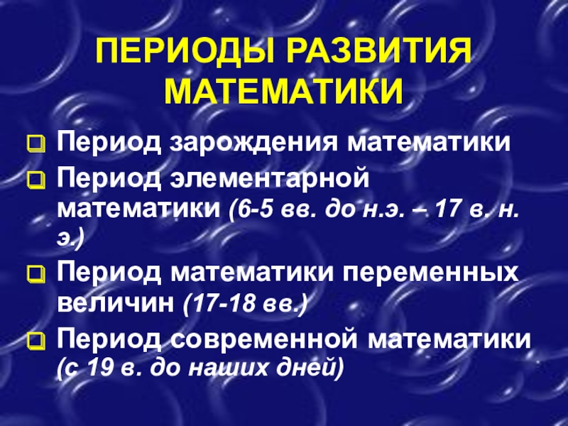 Слайд 3ПЕРИОДЫ РАЗВИТИЯ МАТЕМАТИКИ