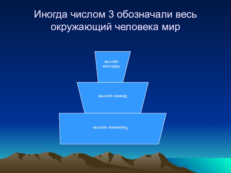 Слайд 11Иногда числом 3 обозначали весь окружающий человека мир