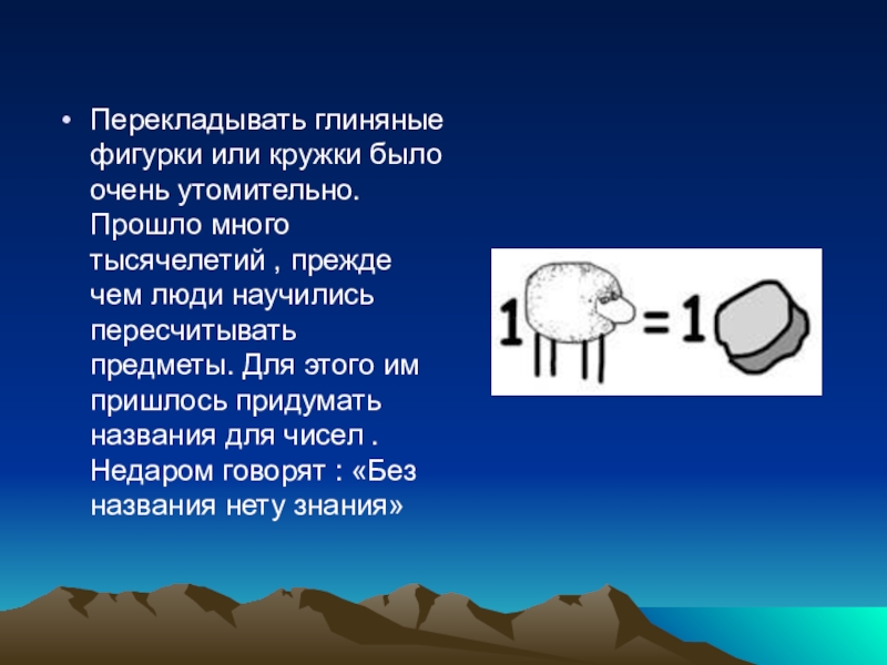 Перекладывать глиняные фигурки или кружки было очень утомительно. Прошло много тысячелетий , прежде чем люди научились пересчитывать