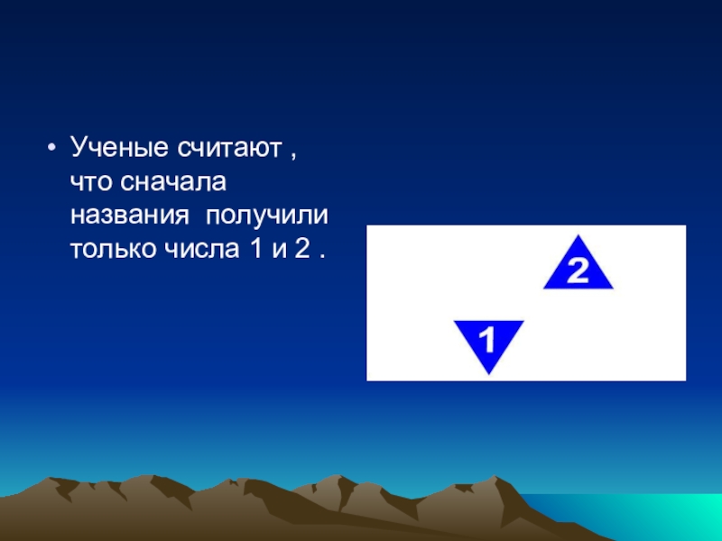 Ученые считают , что сначала названия получили только числа 1 и 2 .