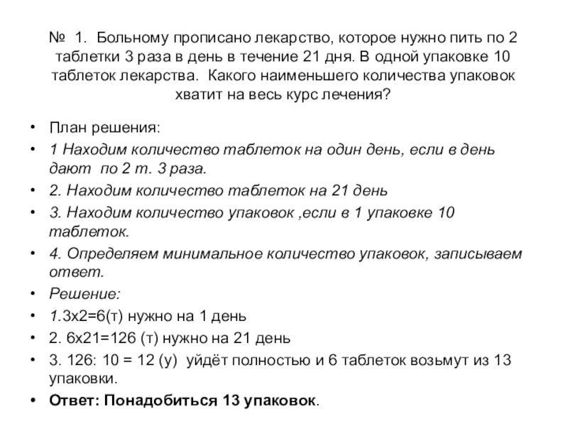 1 Находим количество таблеток на один день, если в день дают по 2 т. 3 раза.