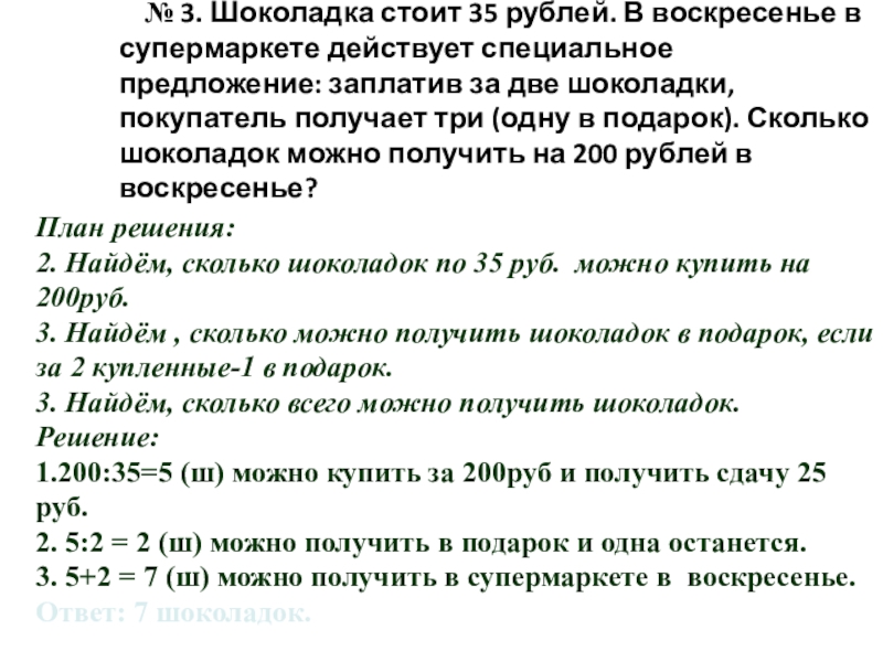 2. Найдём, сколько шоколадок по 35 руб. можно купить на 200руб.