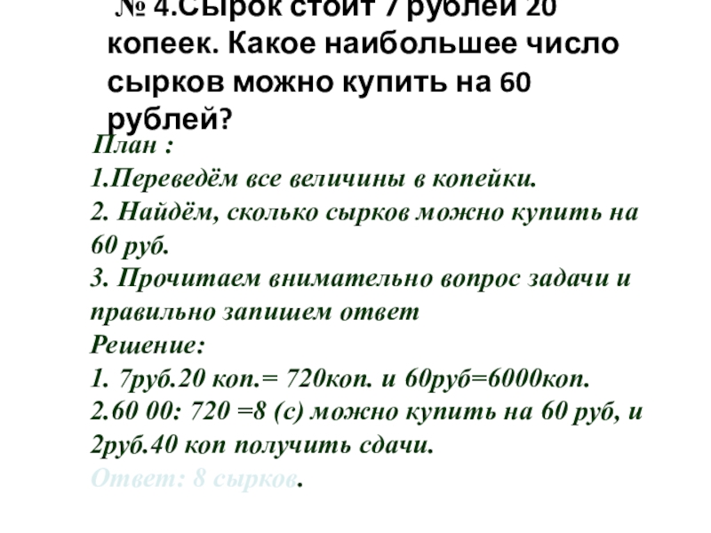 2. Найдём, сколько сырков можно купить на 60 руб.