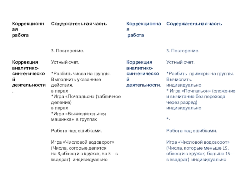 Корригировать аналитико-синтетическую деятельность на основе зрительного и слухового восприятия;