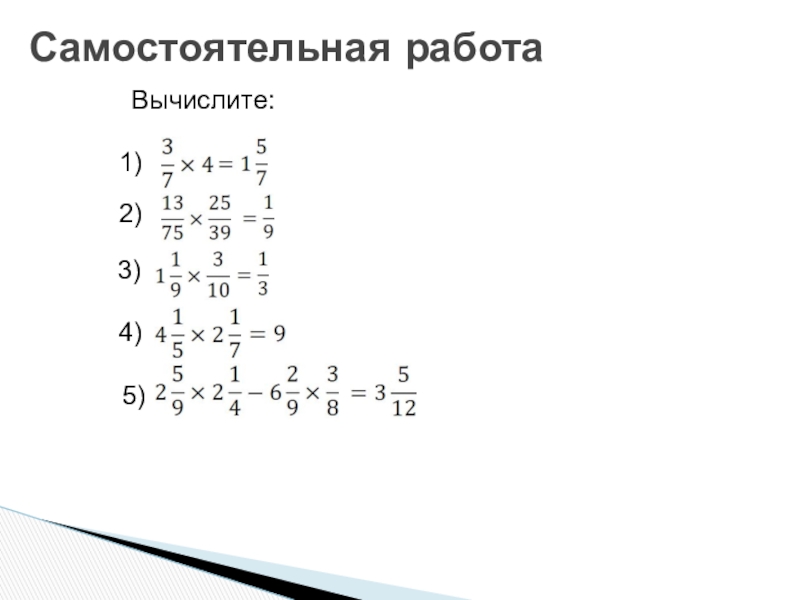 Самостоятельная работаВычислите:1)2)3)4)5)