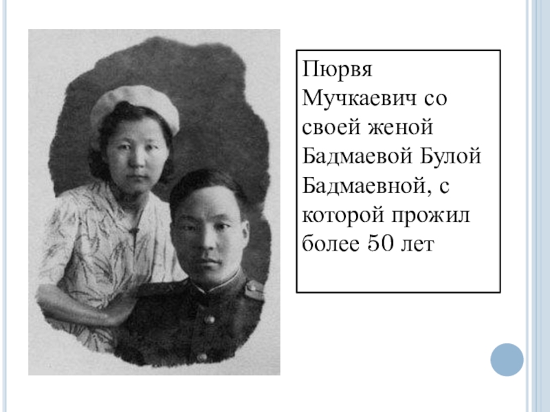 Слайд 7Пюрвя Мучкаевич со своей женой Бадмаевой Булой Бадмаевной, с которой прожил