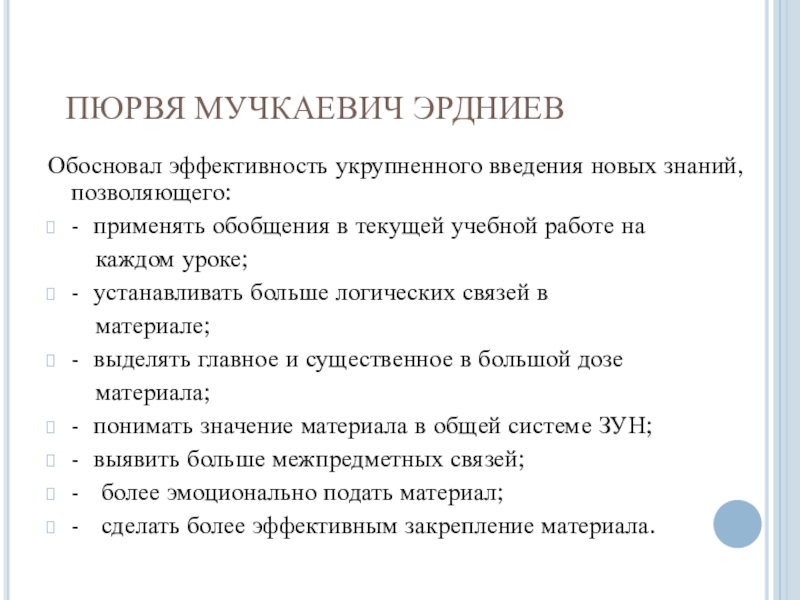 Обосновал эффективность укрупненного введения новых знаний, позволяющего: