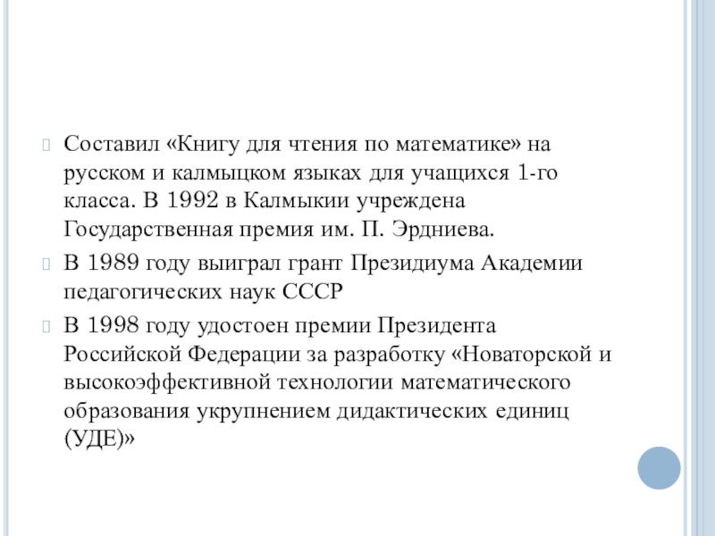 Слайд 20Составил «Книгу для чтения по математике» на русском и калмыцком языках