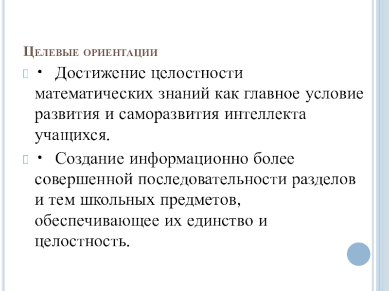 • Создание информационно более совершенной последовательности разделов и тем школьных предметов, обеспечивающее их единство и целостность.