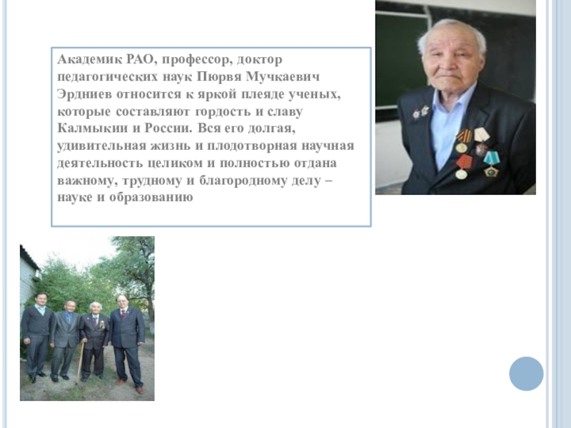 Слайд 21Академик РАО, профессор, доктор педагогических наук Пюрвя Мучкаевич Эрдниев относится к