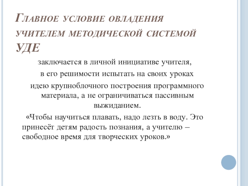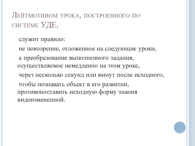 Слайд 17Лейтмотивом урока, построенного по системе УДЕ,