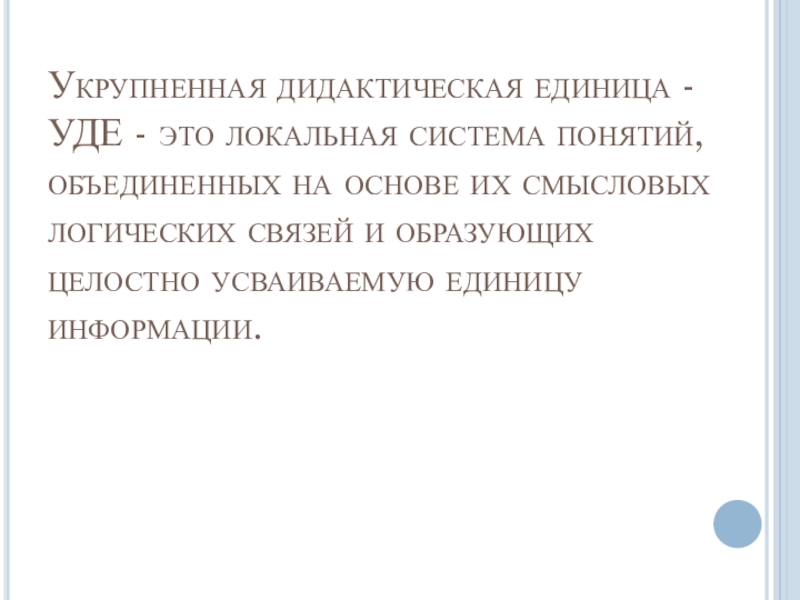 Слайд 12Укрупненная дидактическая единица - УДЕ - это локальная система понятий, объединенных