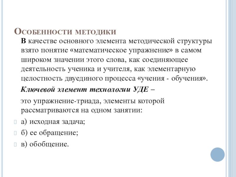 «математическое упражнение» в самом широком значении этого слова, как соединяющее деятельность ученика и учителя, как элементарную целостность двуединого процесса «учения - обучения».