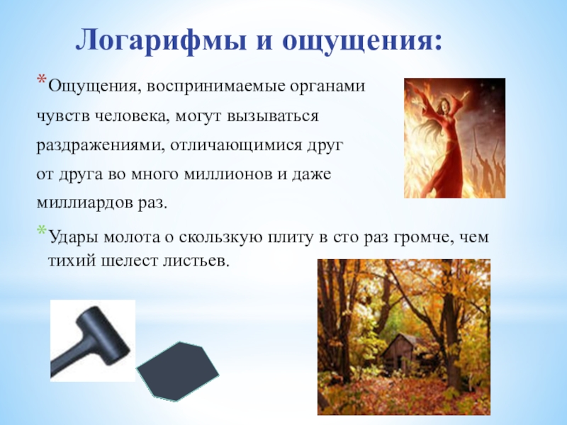 раздражения, т.е. величина ощущения приблизительно пропорциональна десятичному логарифму величины раздражения.
